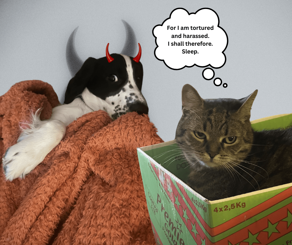 But. I cannot even sit in my Emotional Processing Box without the persistent pitter-patter of hellhound footlings violating my sacred aura.